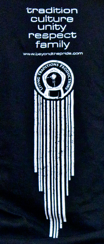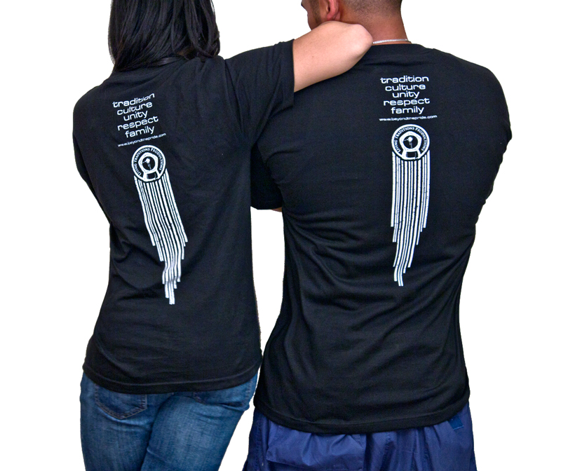 This Beyond the Pride Exhibition shirt is made for the 2011 event. It was worn by all the dancers at the end of the night to show that we stand united. No more red, black, yellow, green, orange or any other color. When we begin the event, we were different, by the end of the event we all have something in common, we went Beyond the "I." Get your own shirt and show that you can go beyond and keep the tradition alive!